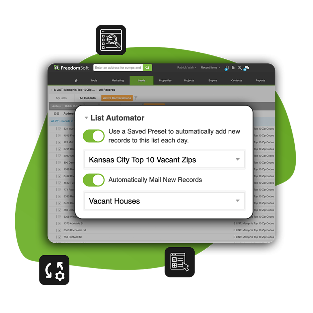 The List Automator tool enables you to set your criteria once and let FreedomSoft keep your lists up-to-date automatically. New leads are added, old records are updated, and your marketing campaigns fire without you lifting a finger.